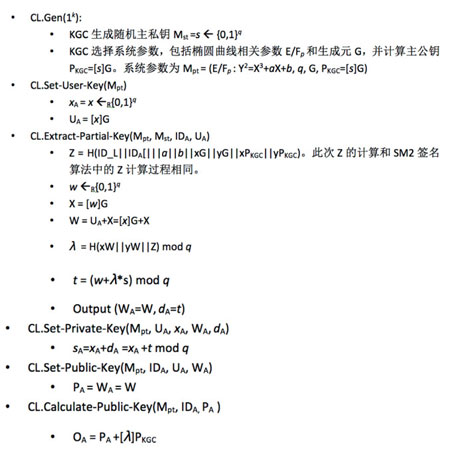 . CL.Set-Public-Key(Mpt, xA):用户发布的公钥PA只能由用户生成,无法加入KGC的相关输入。
