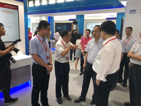 海南省委常委、三亚市委书记严朝君,中国电子董事长、党组书记芮晓武,在中电长城网际总经理贺卫东的陪同下参观奥联展台,奥联产品总监白顺东做了关于SM9密码算法最新情况的汇报。